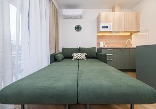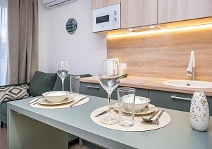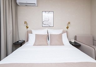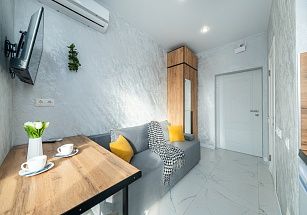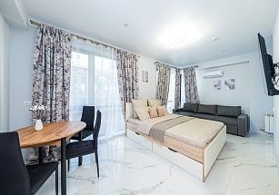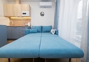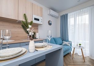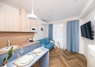 В квартирах с оборудованными балконами есть WI-FI, кондиционеры, гигиенические принадлежности, посуда, постельное белье, утюг, фен, кофемашина, электрочайник, микроволновка и все необходимое для комфортного проживания.