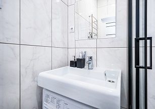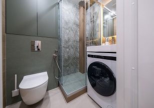 санузлом со всем необходимым для соблюдения личной гигиены и стиральной машинкой;