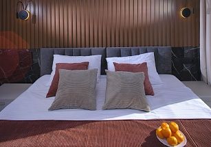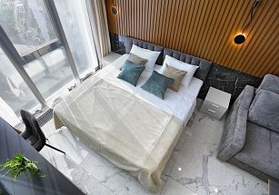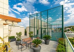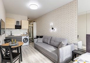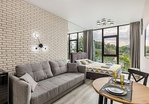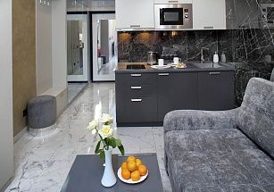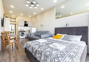 Новая очень уютная и стильная студия для двоих гостей. Самый центр Сочи у парка Дендрарий. Пляж и чистое море в 7 минутах ходьбы. ЖК Метрополь – дом премиум-класса с уличными тренажерами, теннисным кортом, баскетбольной площадкой, зоной отдыха с детскими бассейнами купельного типа (70 см глубина), шезлонгами и беседками на крыше. И потрясающий панорамный вид на Сочи! Во дворе отличная детская площадка, фонтан. Магазины, кафе, рестораны, остановки – рядом с домом. По близости парк Дендрарий, Цирк, Зимний театр, Летний театр, центральная прогулочная набережная 7 км длиной. Для вашего комфорта полноценная двуспальная кровать с ортопедическим матрасом (160*200) и сатиновым постельным бельем. Белье стирается только в прачечной. Удобный современный мини-диван (130 см). ВСЕГДА ИДЕАЛЬНАЯ ЧИСТОТА. При заезде берется возвратный залог в размере 5000 рублей, возвращается в день выезда.