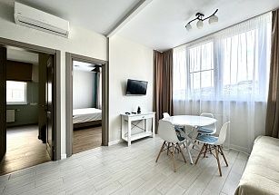 Евро двухкомнатный апартамент с балконом на первой линии в Сириусе АЛС 7-441